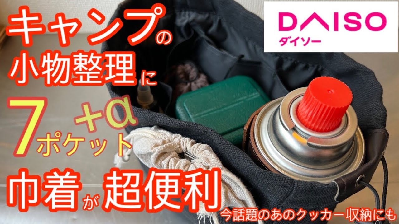 ダイソー キャンプの小物整理に超便利な7ポケット巾着を紹介しちゃいます!アウトドアコーナーに無いけどアウトドアで使えるギア紹介 キャンプ 道具小物整理100均アウトドア269情報GET。