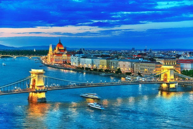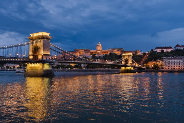 くさり橋、ドナウ川の夜景ハンガリー・ブダペストKITAGAWA.WS。