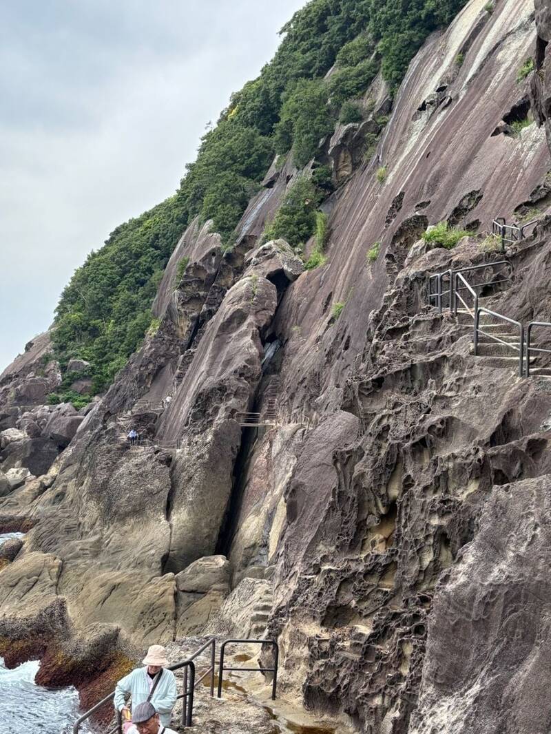 三重県熊野市にある世界遺産、鬼ヶ城に行ってきました。奇岩が連なる迫力の景観、打ち寄せる荒波、そして険しい遊歩道。すべてがスリル満点で、まさに自然の力を感じる絶景でした。,Visited Onigajo, a UNESCO World Heritage Site in Kumano City, Mie. From thedramatic rock formations and crashing。