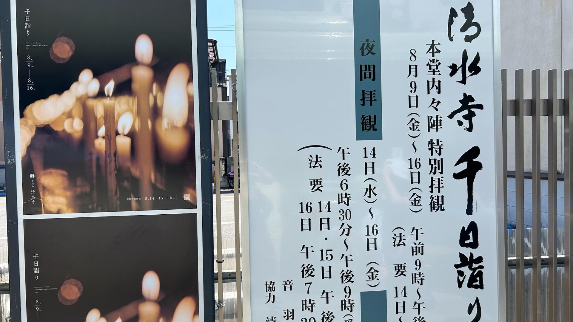 清水寺 千日詣り 一日の参詣で千日分のご利益。観音信仰における最大の功徳日🙏✨ 毎年8 9~8 16 本堂内々陣特別拝観8 14〜8 16は夜間特別拝観が行われます🕯️清水寺千日詣り寺templeお出かけ夏京都日本kyotojapan。