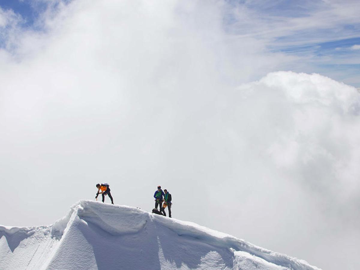 アルプス山脈の北壁 北壁 『グランドジョラス』を登る時でした。 急に雨風が吹き荒れているのに、上がることも下がることもできなかったんです。風雨を避ける方法がなく、寝袋を逆さまにかぶって8時間も絶壁- MK。