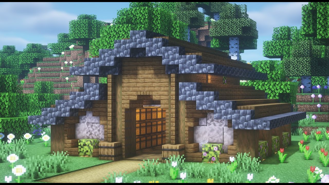 マイクラ おしゃれな倉庫の作り方!家も倉庫も可愛くする マインクラフト how to build minecraft warehouse。