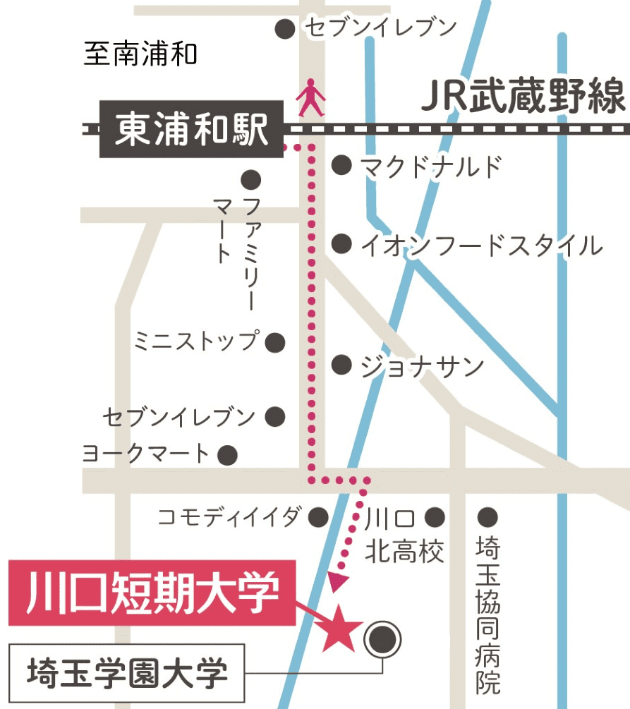 交通アクセスJR武蔵野線東川口駅より無料のスクールバスを運行しております。