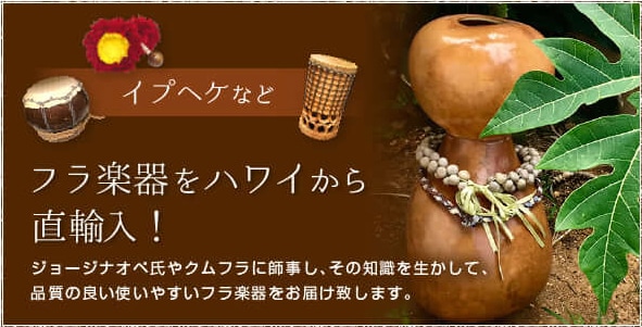 ハワイの楽器 - イプヘケ、ウリウリなどの本格フラダンス楽器。