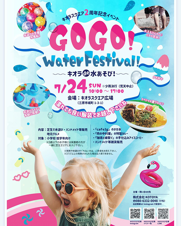 7月24日 日 GOGO!Water Festival開催キオラスクエア広場 – MJ みはら情報局 広島県三原市の街ネタ満載地域情報サイト。