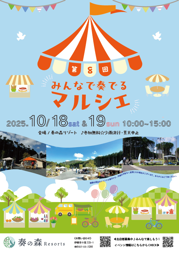 終了 8 9 第6回 みんなで奏でるマルシェ 開催 - 伊豆「奏の森リゾート」大室山近くの複合観光施設。