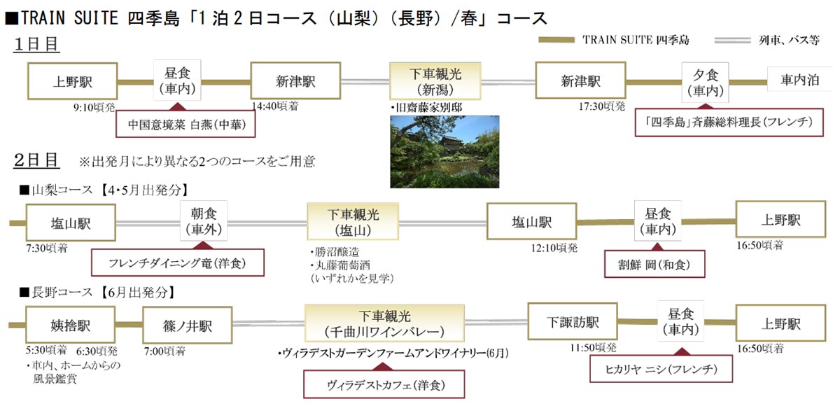 2024年度 1泊2日コース 山梨春 4〜6月出発 のご紹介旅の行程のご紹介TRAIN SUITE 四季島JR東日本。