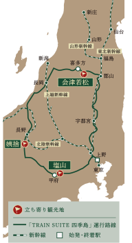 TRAIN SUITE 四季島の停車駅・路線図・沿線の観光情報・模型トラベルタウンズ。