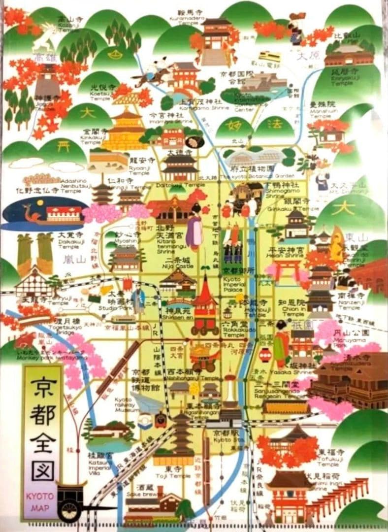 京都市内全域マップ - 京都観光研究所名所イラスト地図オススメコース。