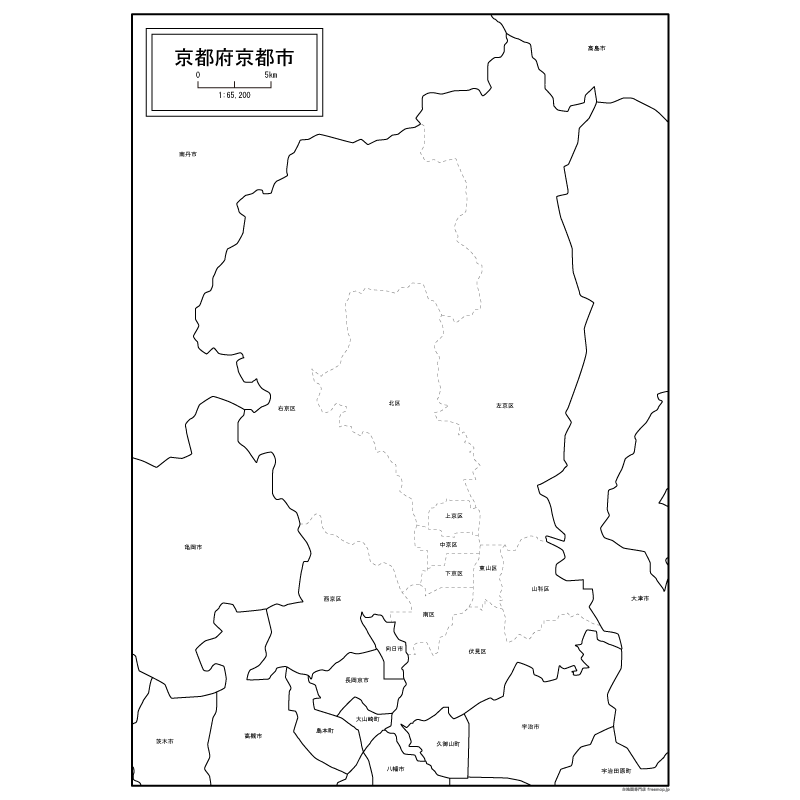 京都府京都市 区別 の白地図のイラスト素材イラスト無料・かわいいテンプレート。