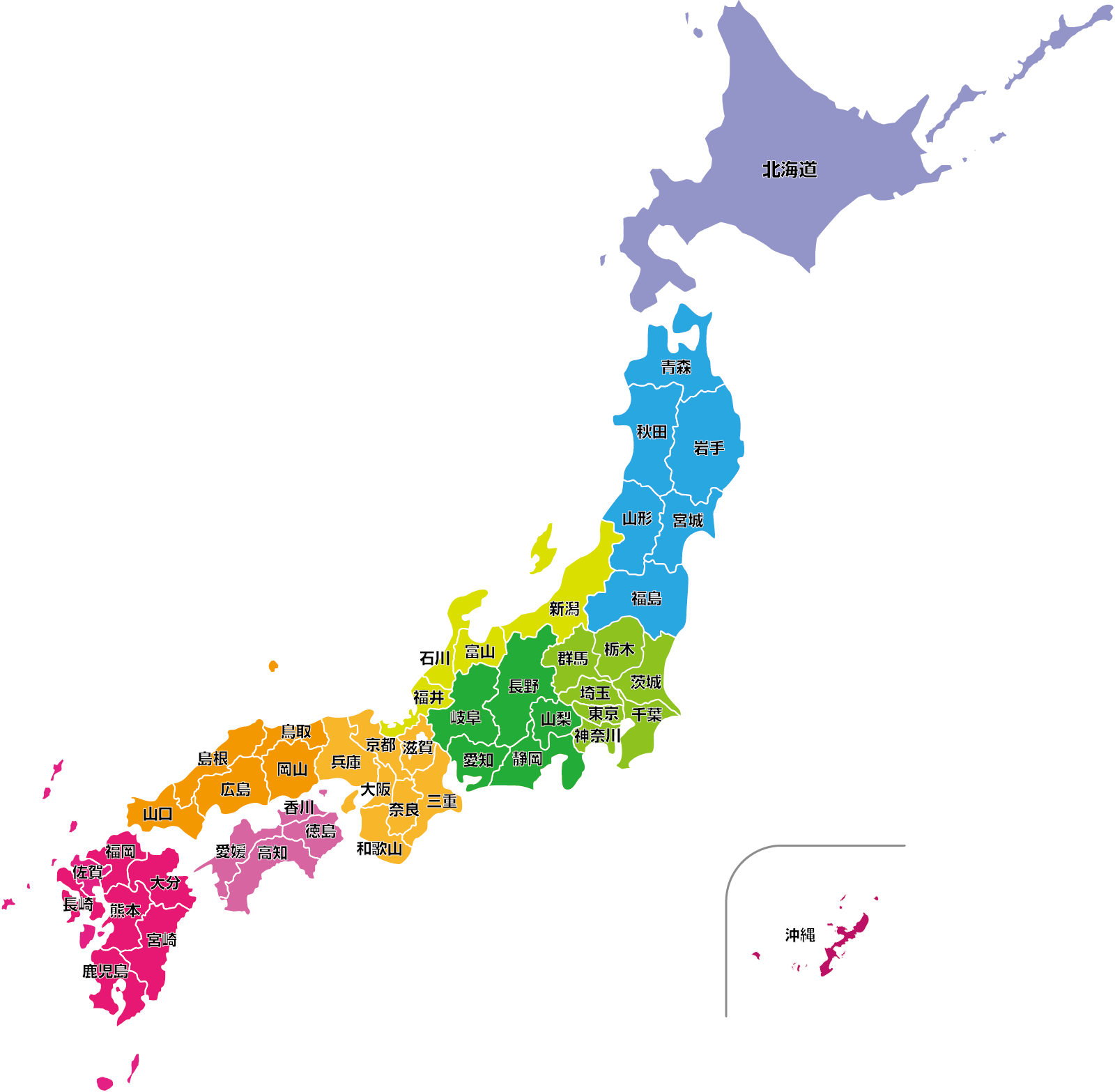 日本地図のイラスト 色分け、都道府県名記載園だより、おたよりで使えるかわいいイラストの無料素材集 イラストだより。