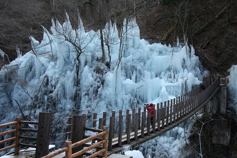 秩父三大氷柱「小鹿野町尾ノ内渓谷」 つり橋の上でカラオケ大会 - 秩父経済新聞。