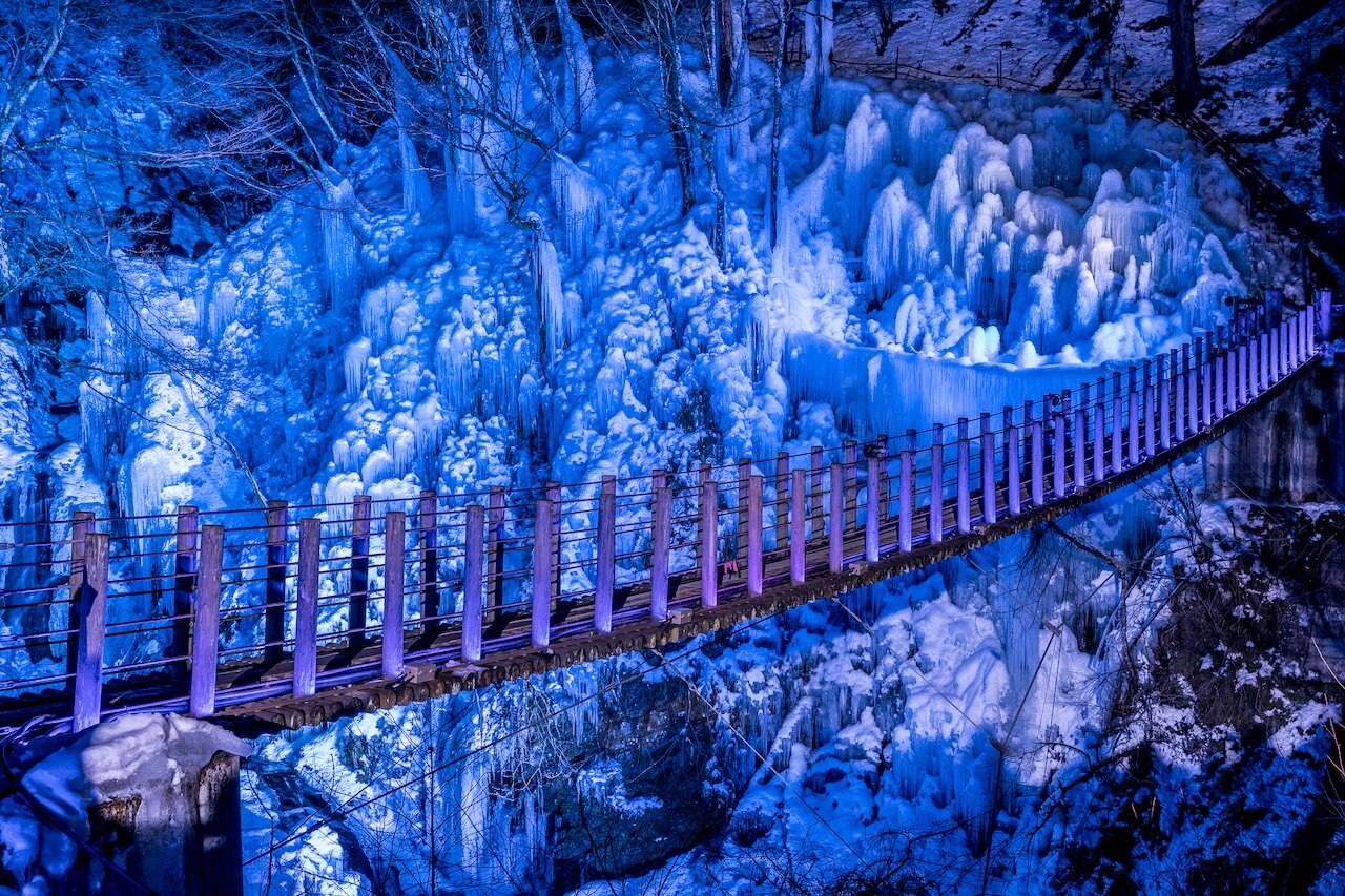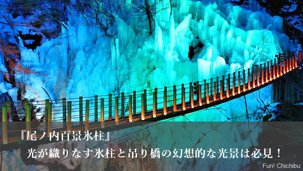 尾ノ内氷柱2025アクセス方法とライトアップ期間を紹介!光が織りなす氷柱と吊り橋の幻想的な光景は必見秩父・長瀞のおすすめ観光スポット紹介 -Fun! Chichibu ファンチチブ。