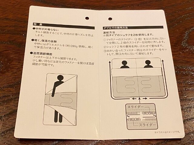 連結できるシュラフ 1280円ファスナーで連結して1枚の大型寝袋にする方法。