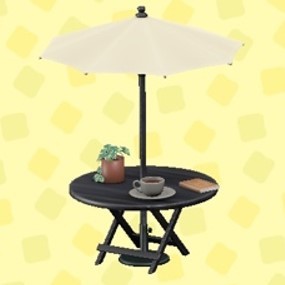 カフェなパラソルテーブル - ブラック - アイボリーあつまれどうぶつの森あつ森コーデ。