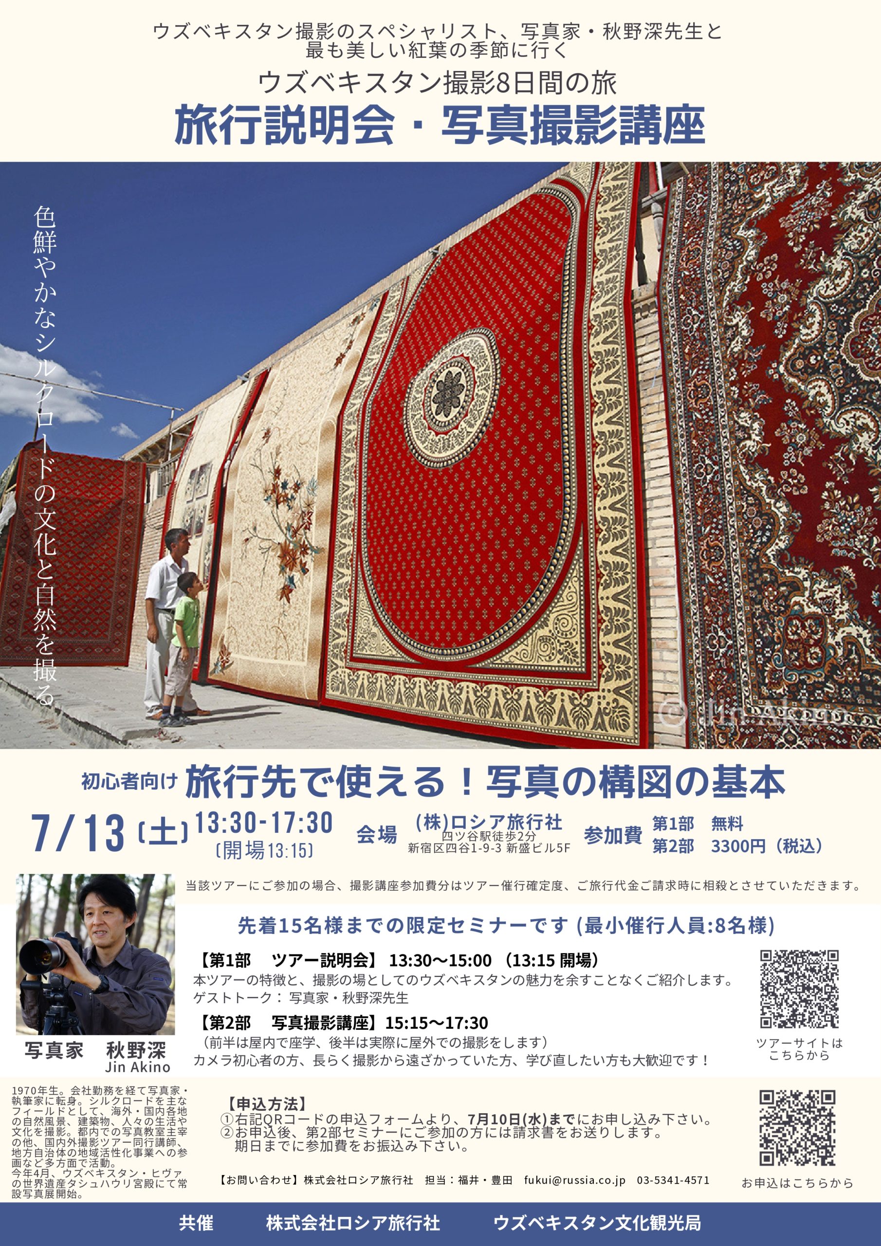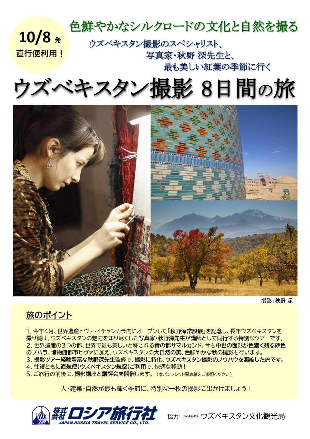 7 18 東京 10月10日発「写真家・秋野深先生と撮るウズベキスタン~シルクロードに息づく美しい青タイルの世界遺産と大自然の紅葉を撮る8日間」ツアー説明会開催のご案内正岡あかね観光マーケティングオフィスilona・ウズベキスタン文化観光局代表。