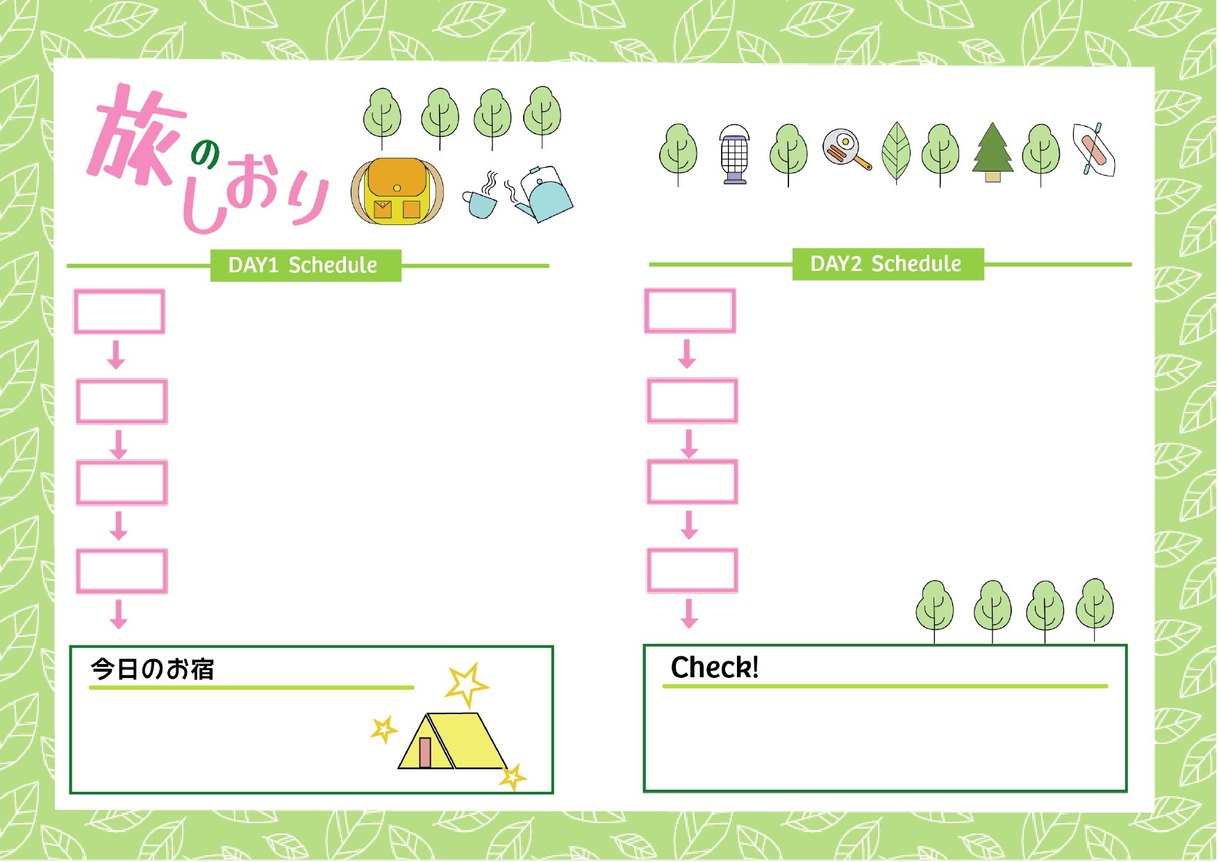 かわいい&おしゃれな旅のしおり・旅行日程表と予定簡単に無料テンプレートをダウンロードテンプレートボックス。