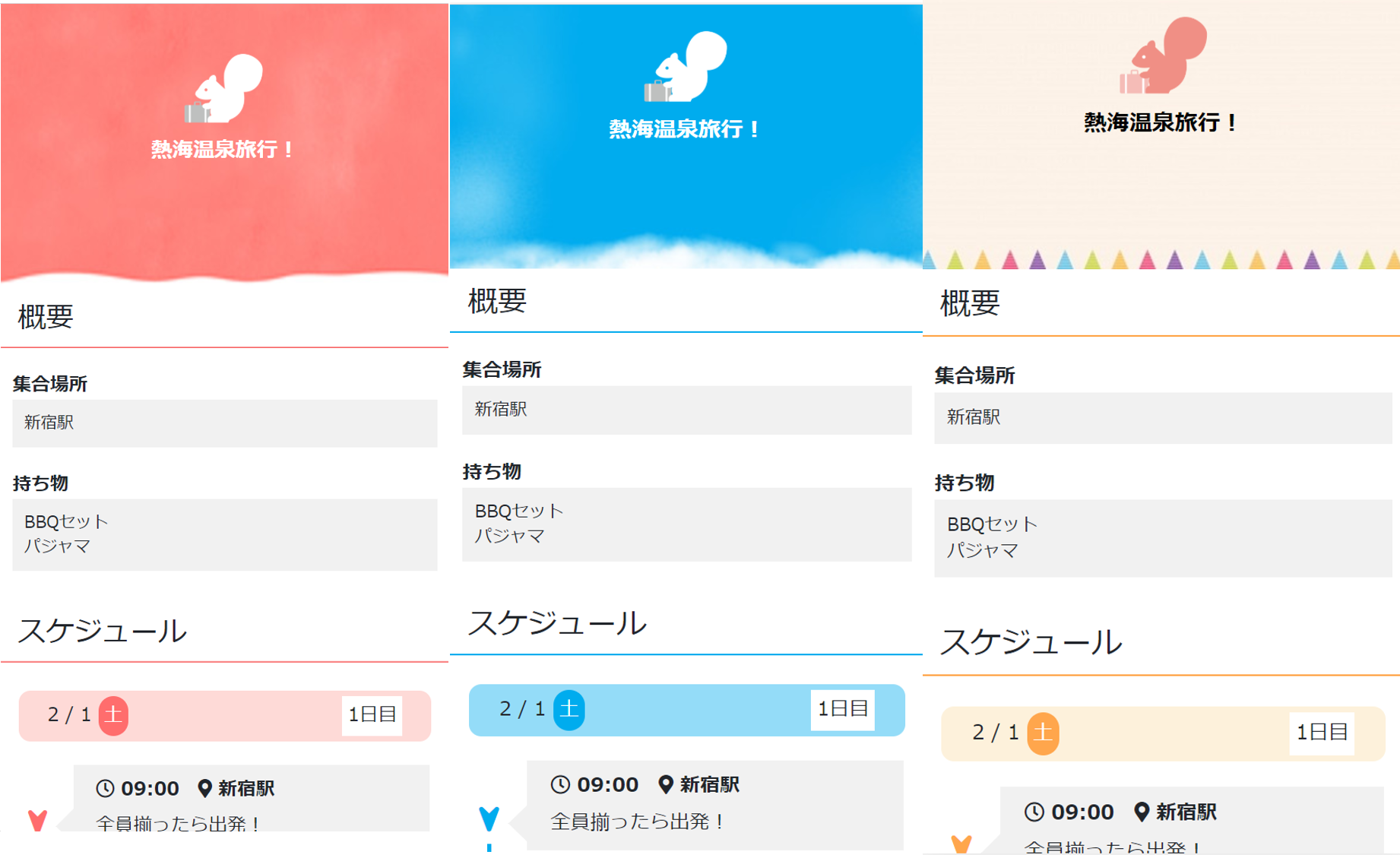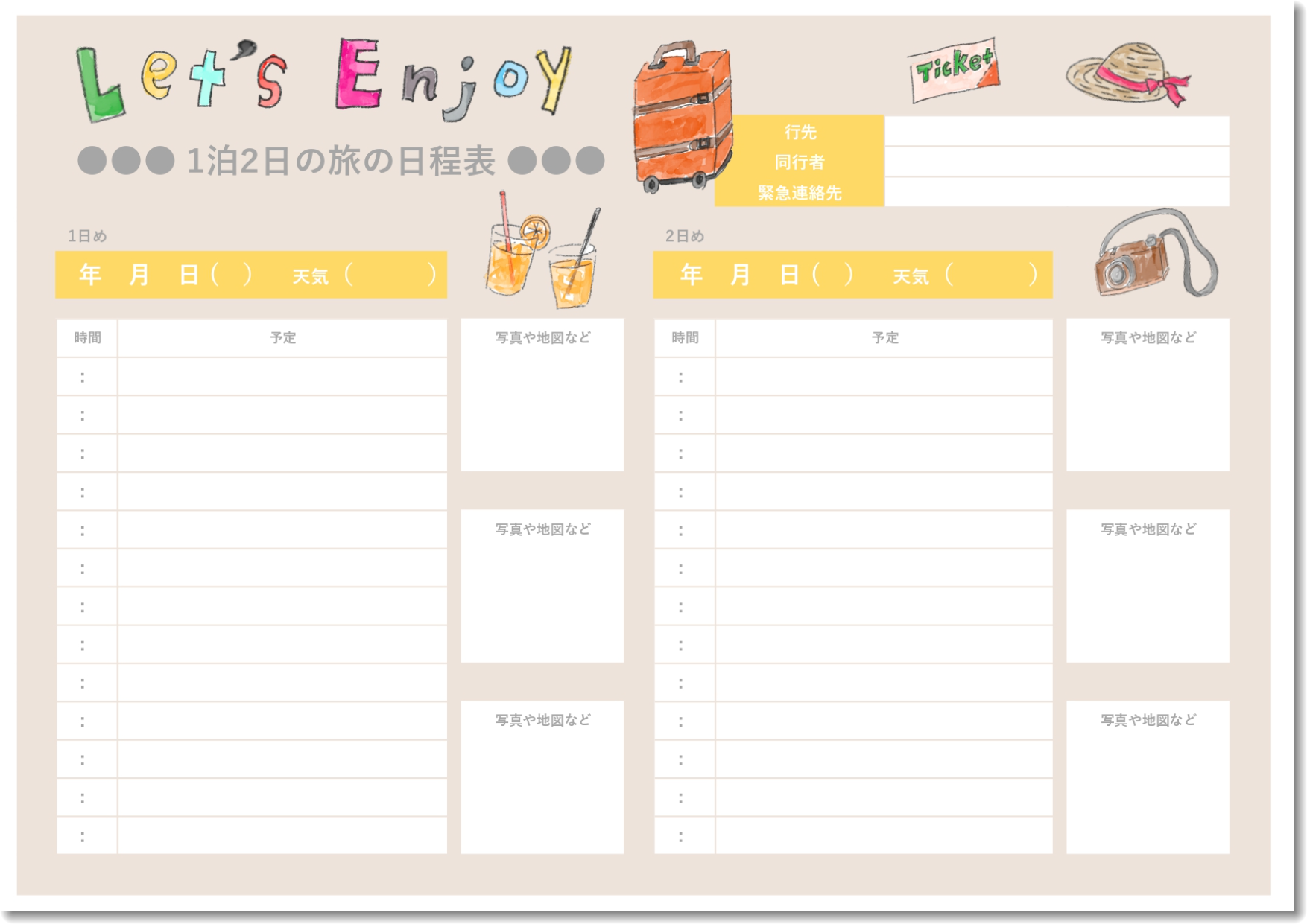 無料 旅行日程表テンプレート│ かわいい系2泊3日用 – evedesign。