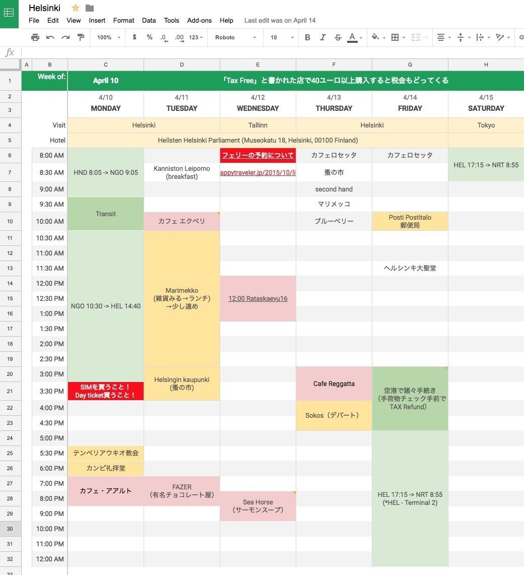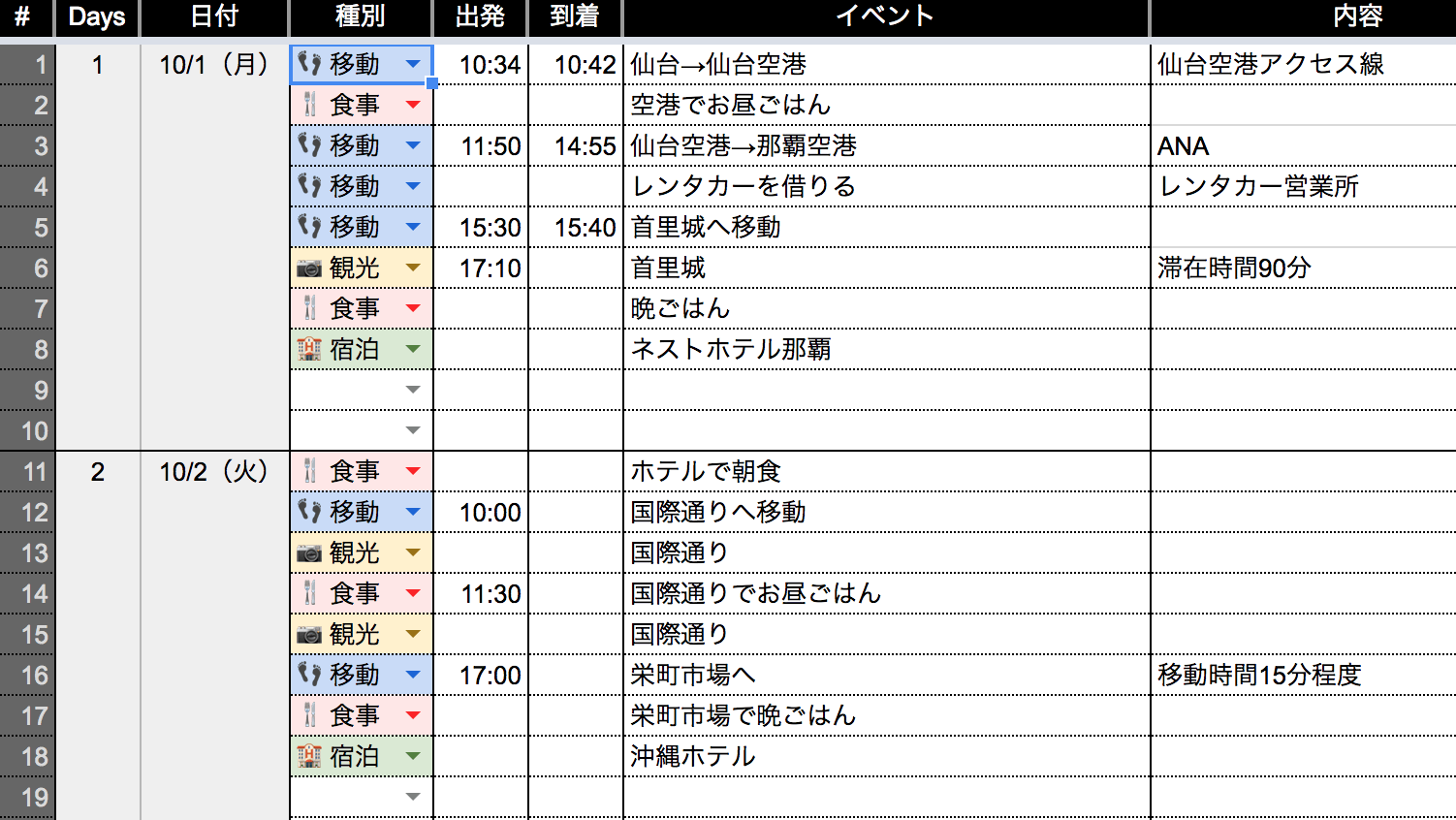 旅程表のテンプレート ダウンロード Google スプレッドシート、Excel形式で「旅のしおり」仙台でSFCをめざす。