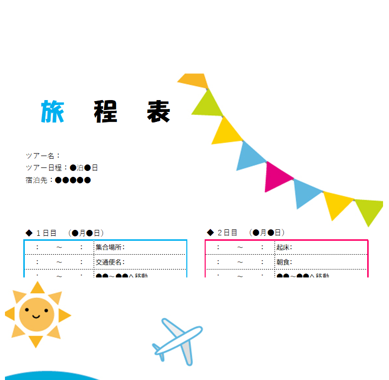 旅行日程表 かわいい&おしゃれな旅のしおりと行程表 観光やお出かけに作成・Excel・Word・PDFの無料テンプレートをダウンロード。