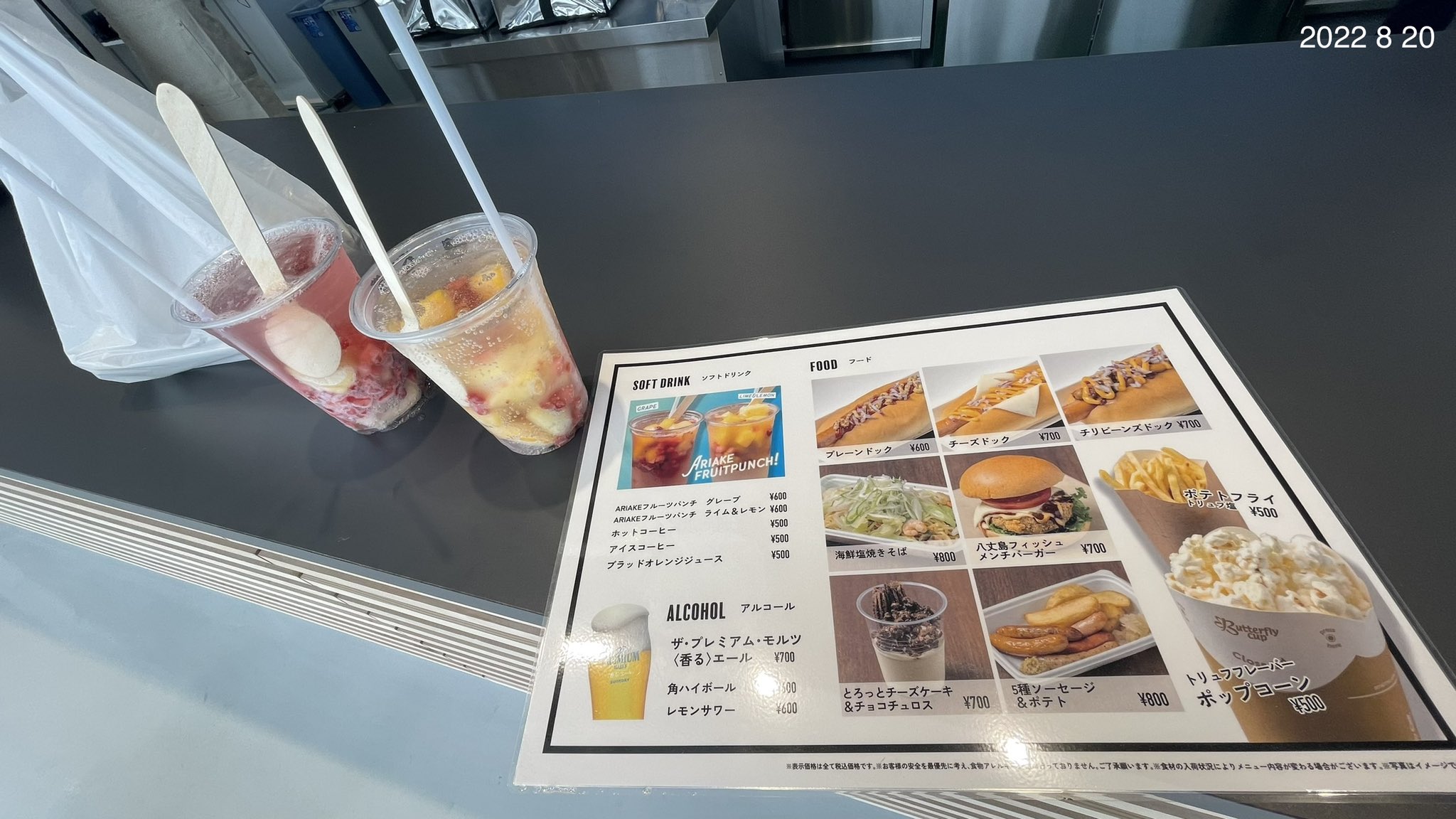 東京湾岸定点観察 on X: "有明アリーナ2階カフェのお客さま第一号いただきましたー‼️ テーブル&チェア無く、テイクアウトのみのカフェでした 有明の名を冠するARIAKEフルーツパンチと八丈島フィッシュメンチバーガーをお買上げ✌️https:t.co ieO3sjwXWs"X。