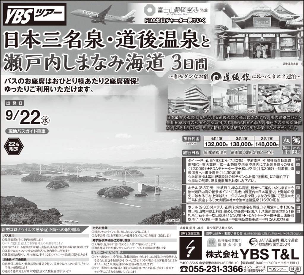 山梨日日新聞に広告が掲載されましたYBS T&L 旅行事業本部。
