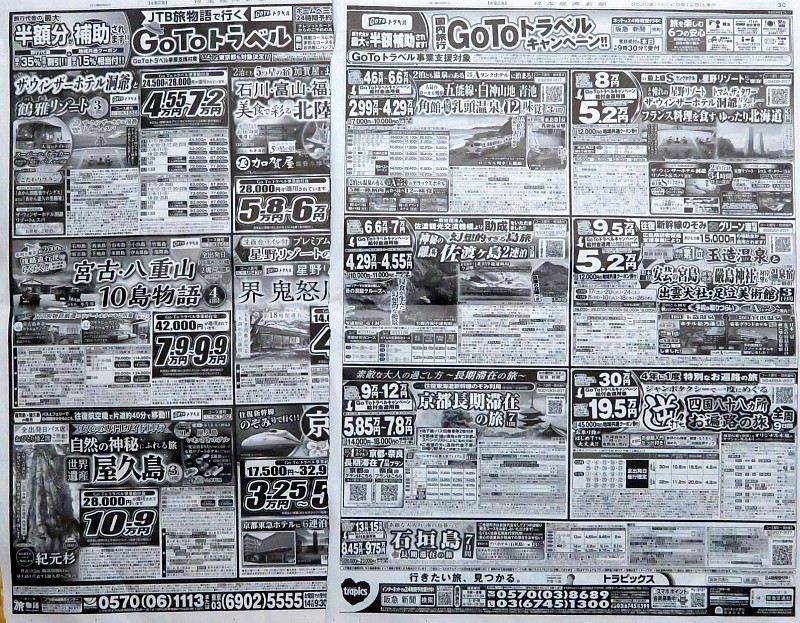 No526 GoTo トラベル 早くも東京発着パックの新聞大広告: ニッポン デジカメ 見て歩き。