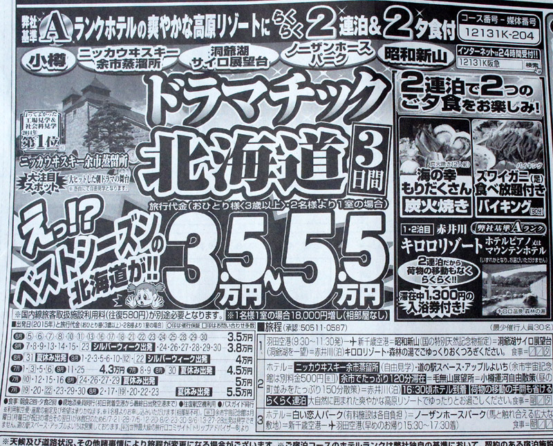 旅行案内 新聞紙面企画札幌でデザイン制作から広告企画制作のことは株式会社nu ヌー にご相談ください。