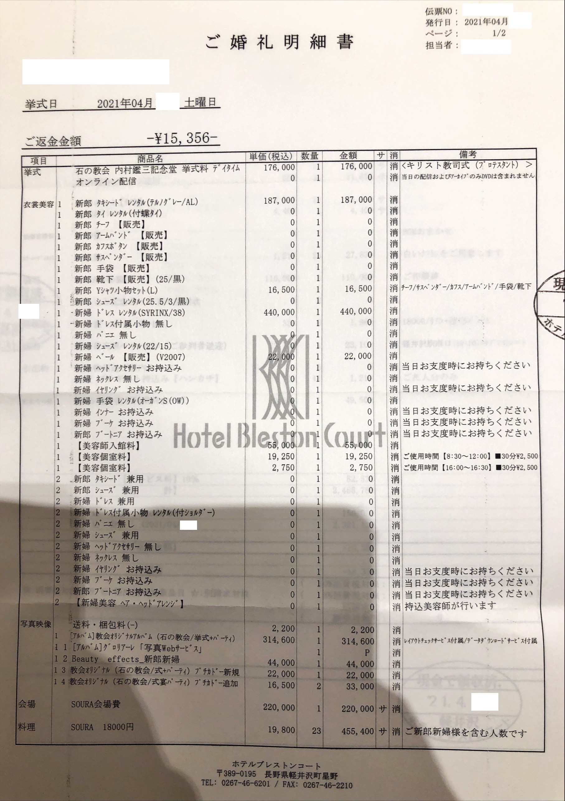 軽井沢で結婚式を挙げました!費用について 挙式、会場費、衣装、小物、披露宴などにかかった費用一覧カザメンティッシモ。