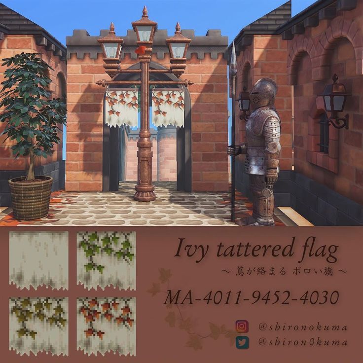 shirono on Instagram: “. マイデザイン投稿しました 𓏸𓈒 〘 Ivy tattered flag 〙 旗付きの街灯ややたいのリメイクに使える 蔦つきのボロい旗 布 を描きました🍃 蔦なしのシンプルなバージョンもあります🙇♀️ お好みあえばご自由にどうぞですあつ森あつまれ。