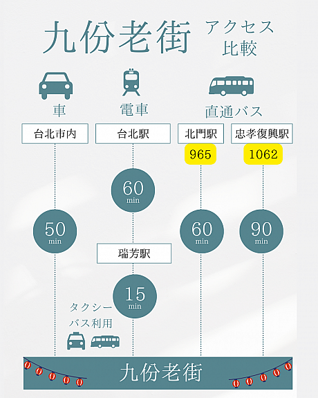 2024年最新 台北から九份の行き方。バス・電車・ツアーどれが良い?│台湾観光ドットコム。