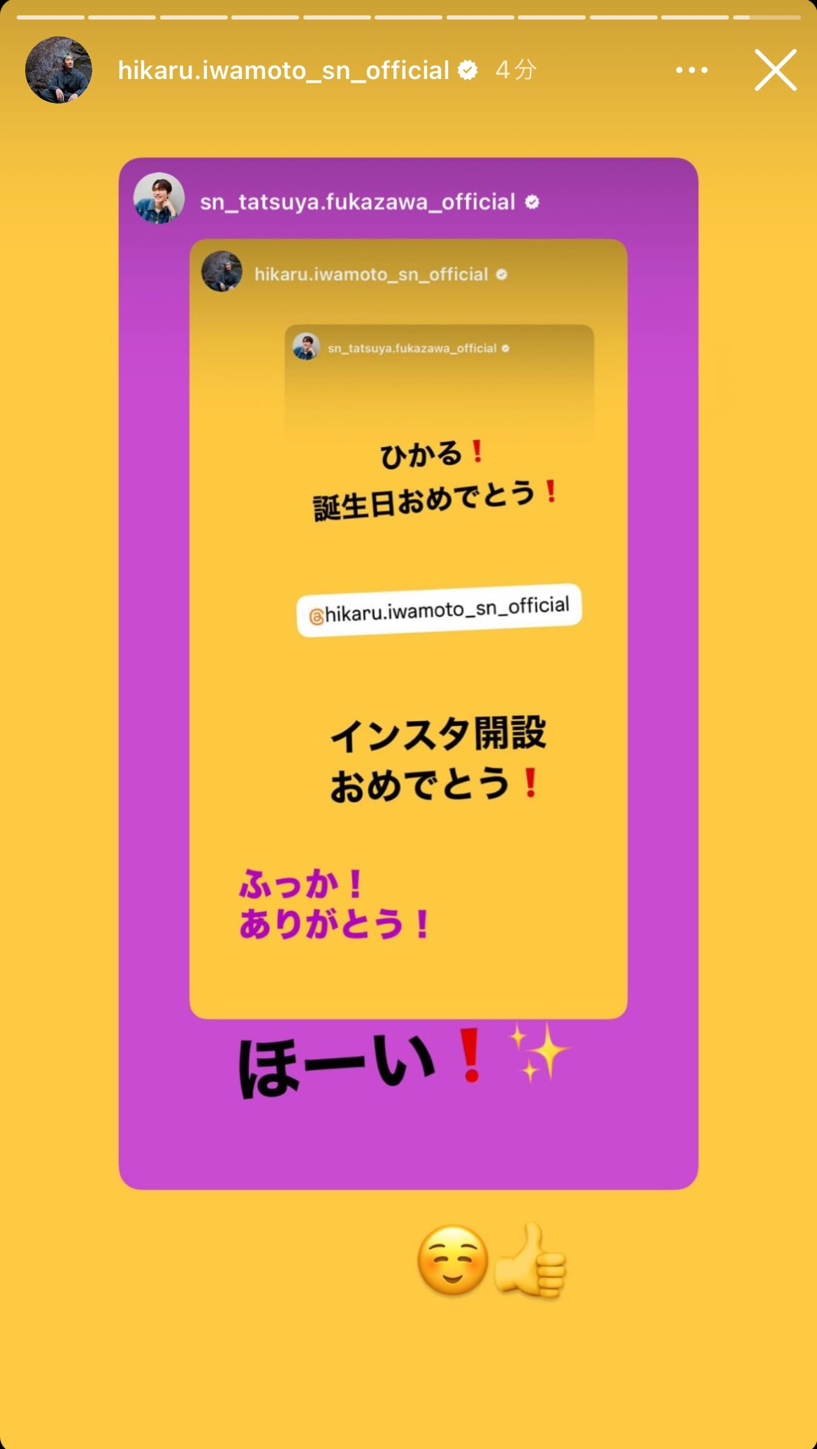 改めて思うけど, “いわふかはエモい”, 2人の関係性は凄く素敵, お互い信頼してて, どちらかが大変な時は支え合って励まし合って,いっつもひーくんから名前が出るのがふっかで最近は雑誌とかテレビとかでも「ふっか、ふっか」って!どんだけ好きなんだよ!って思うぐらい。笑,でも、いわふかが安定している時はグループ的にもいい感じ!って聞いたことあるから良い流れなのかもしれないねぇ!,。