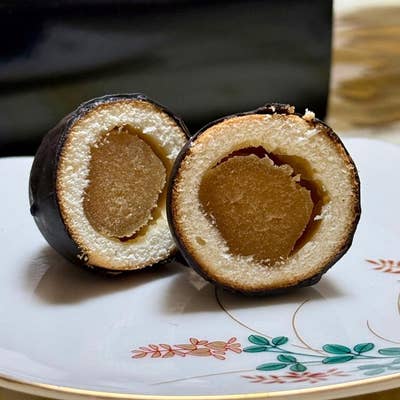 大涌谷くろたまご館 公式 箱根旅行・お土産・富士山黒たまごにちなんだ“まっくろ”な人気スイーツ!マンゴー餡をカステラ生地で包み、ブラックチョコレートでコーティングしたこだわりの人気ナンバー1商品です。 大涌谷黒たまごまんじゅう 4個入り 680円8個。