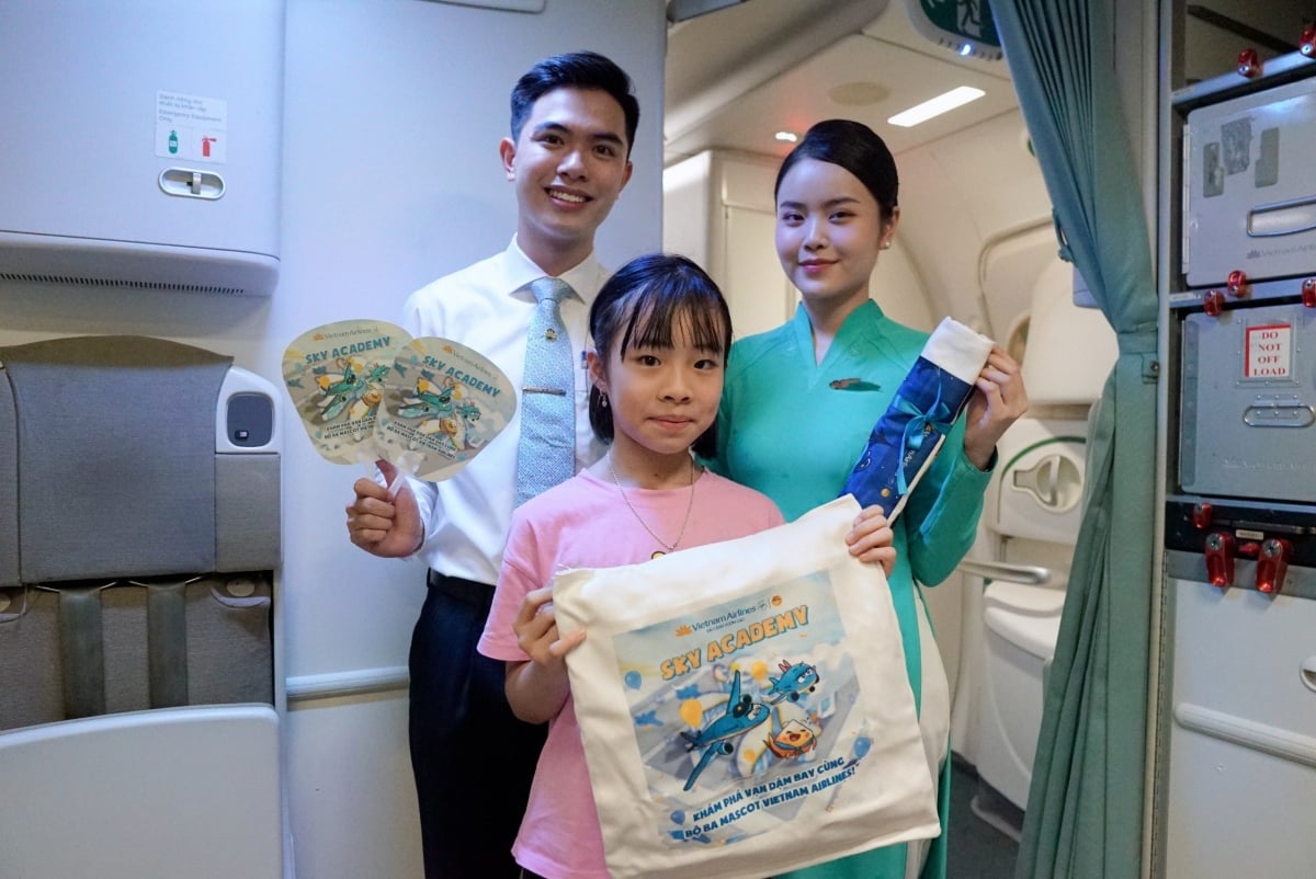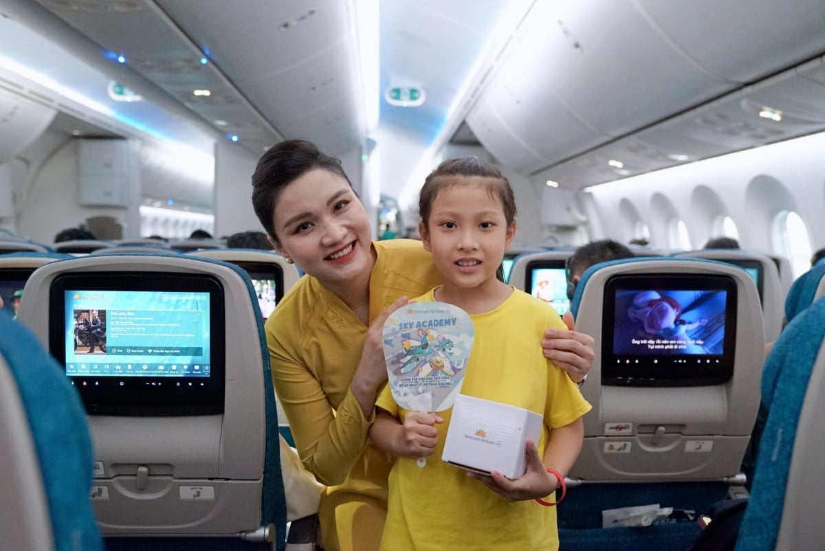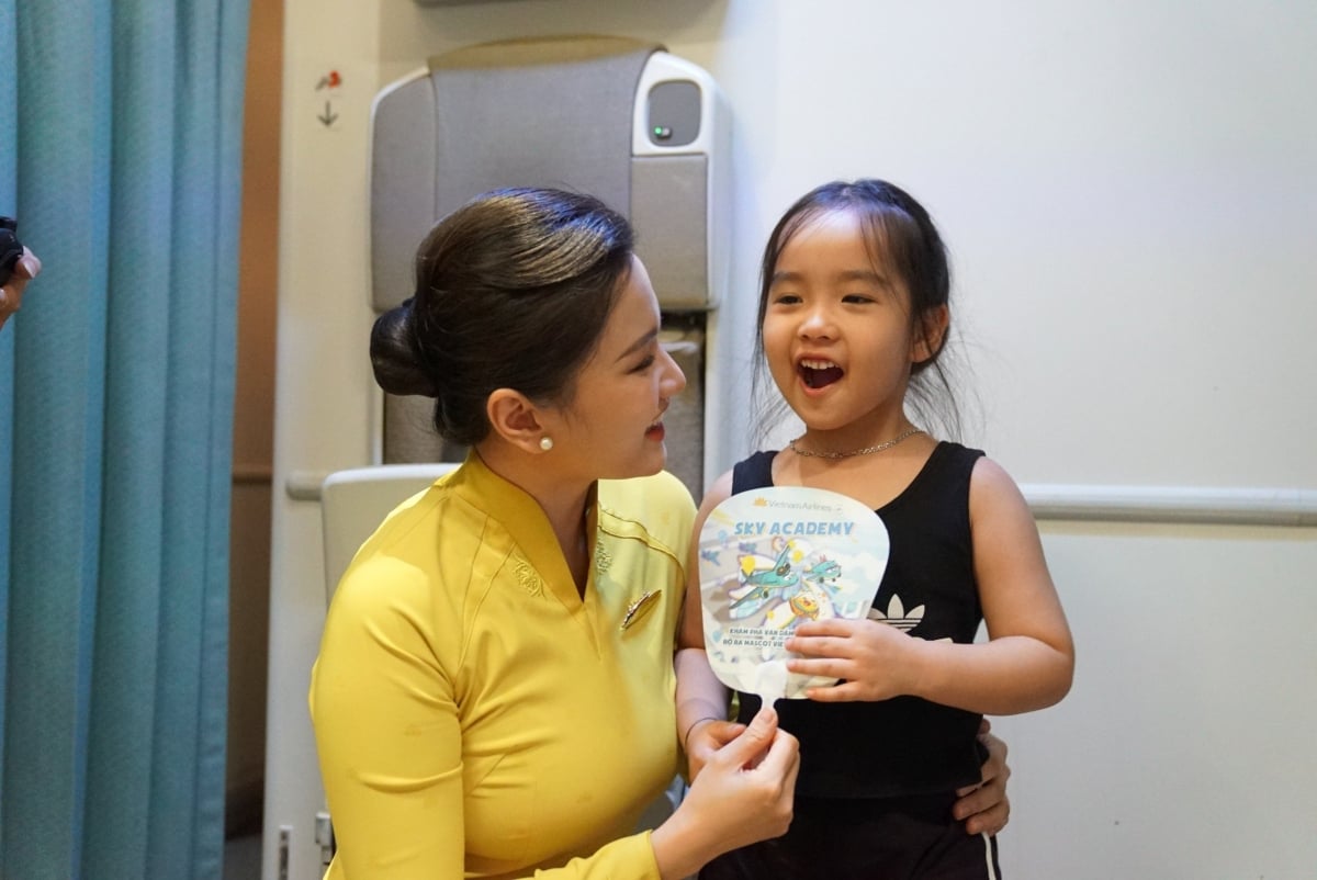 ベトナム航空からの6月1日のユニークな贈り物を若い乗客が楽しむ。