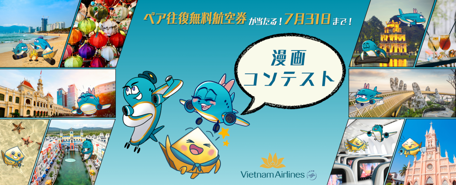 📚新マスコット漫画コンテスト開催!📚 ~最優秀賞はベトナム往復ペア無料航空券🎫~ ベトナム航空では新たに3マスコットがデビューしました!そして、今年日本就航30周年を記念して3マスコットが活躍する漫画を制作します。皆様が読みたいコンテンツやエピソードなど。