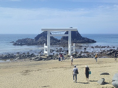 日本の渚百選に選ばれている「桜井二見ヶ浦の夫婦岩」6時間2,000円~カースタレンタカ。