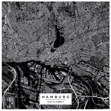 ハンブルク地図壁デカール - TENSTICKERS。
