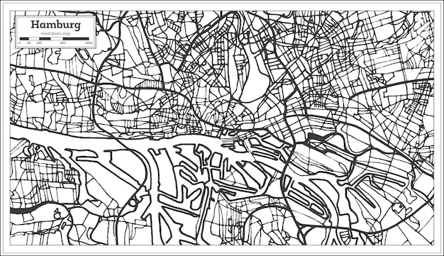 レトロなスタイルのハンブルクドイツの都市地図。白地図。ベクトルイラスト。Premiumベクトル素材。