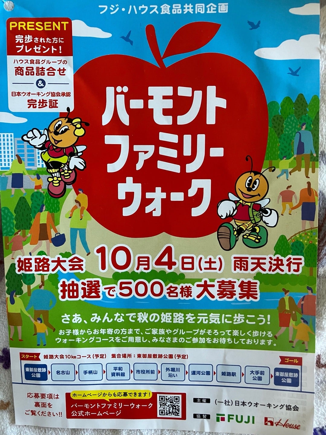 マックスバリュでは恒例となっている、 『バーモントファミリーウォーク』姫路大会に行ってきたよ🚶 今年で17回目となるこの大会は、 世界遺産姫路城周辺の10㎞を歩くイベントで当日は500名近い方が参加をして元気に歩きました‼️ ウォークキング日和 ? とは少し違って。