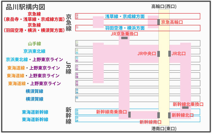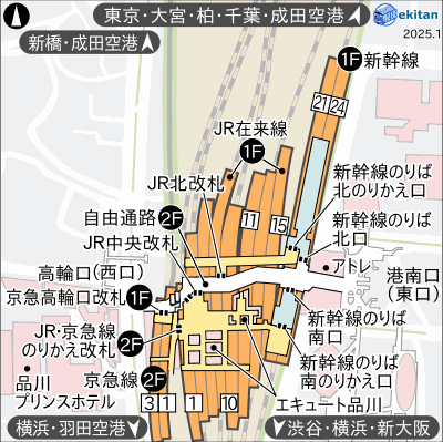 JR品川駅の構内図ガイド 新幹線・山手線ほか わかりやすい地図 - 駅ずかん。