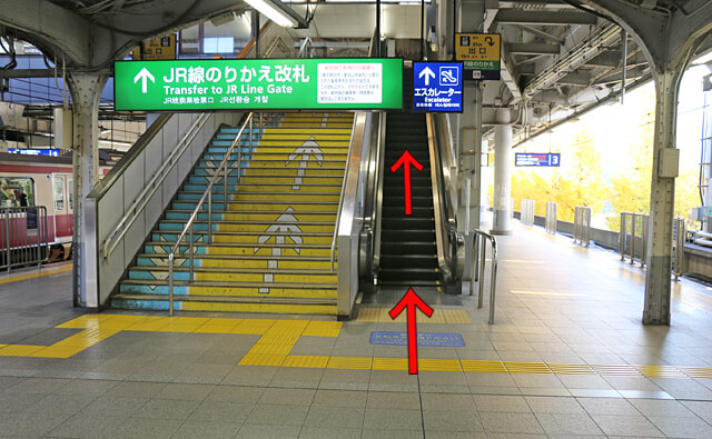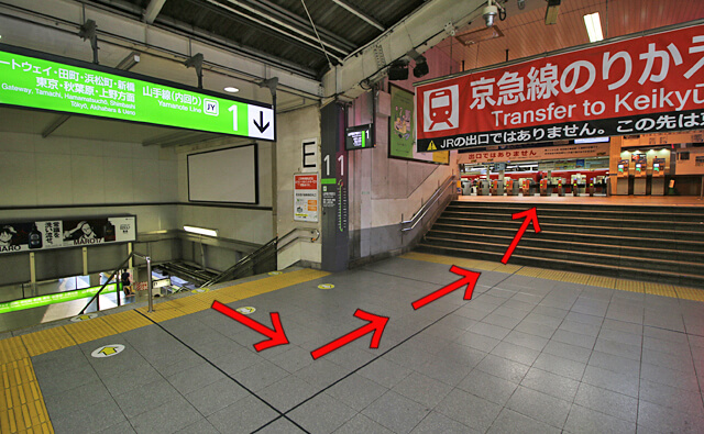 階段 内回りホームから京急のりかえ専用改札への行き方 品川駅山手線山手線パタパタ乗り換え案内。