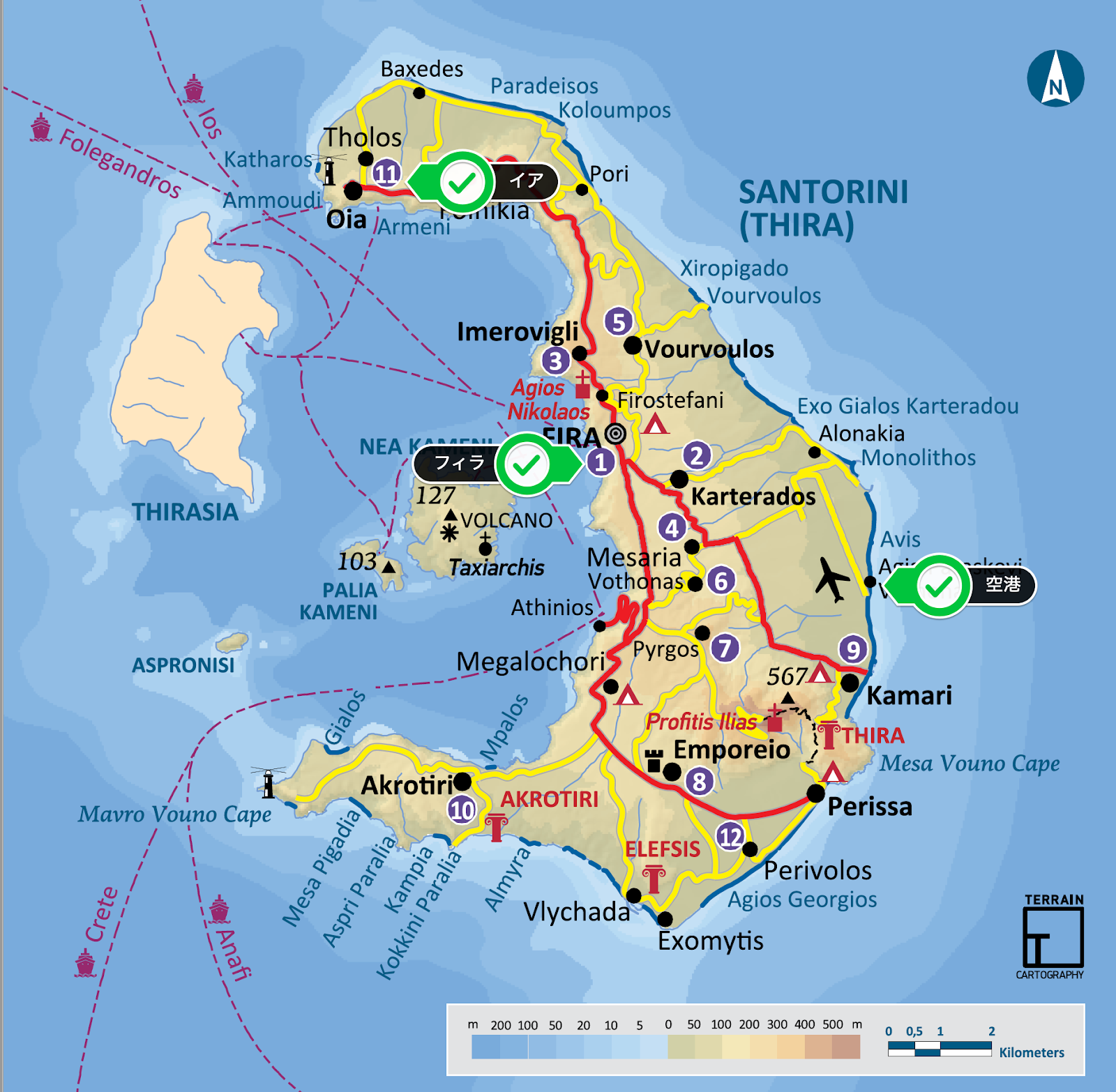 Santorini, an island of Greece, political map のイラスト素材89060783- PIXTA。