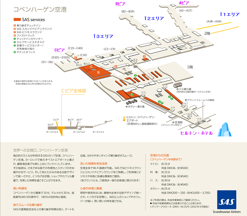 CPH空港マップ - コペンハーゲン空港ターミナルマップ&ナビゲーションガイド。