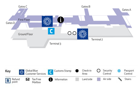 デンマークのコペンハーゲン空港の税払い戻しカウンター「グローバルブルー」 – ミキ・トラベル 北欧発信局。