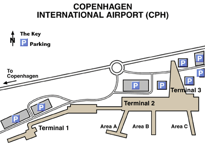 コペンハーゲン空港の地図:コペンハーゲンの空港ターミナルと空港ゲート。