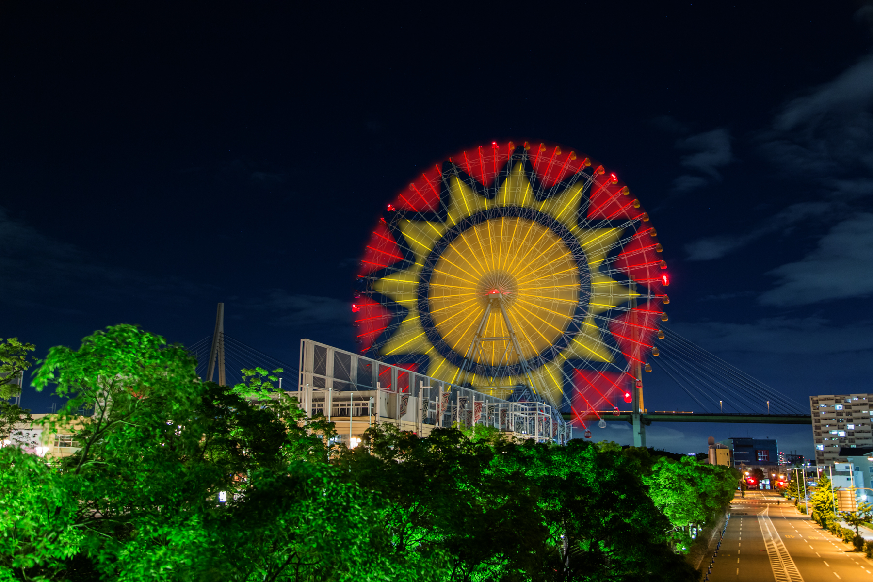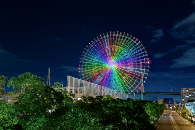大阪『天保山大観覧車』、世界初手法のライトアップリニューアル完成!4月8日から、夜空に直径100mの光のアートが登場!株式会社海遊館、泉陽興業株式会社。