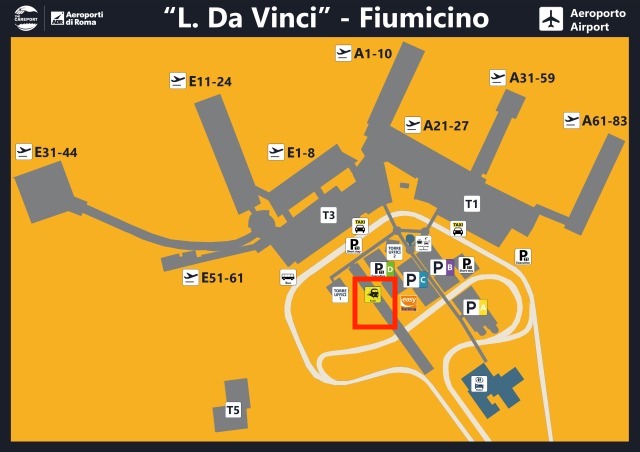 FCO空港マップ - フィウミチーノ空港ターミナルマップ&ナビゲーションガイド。