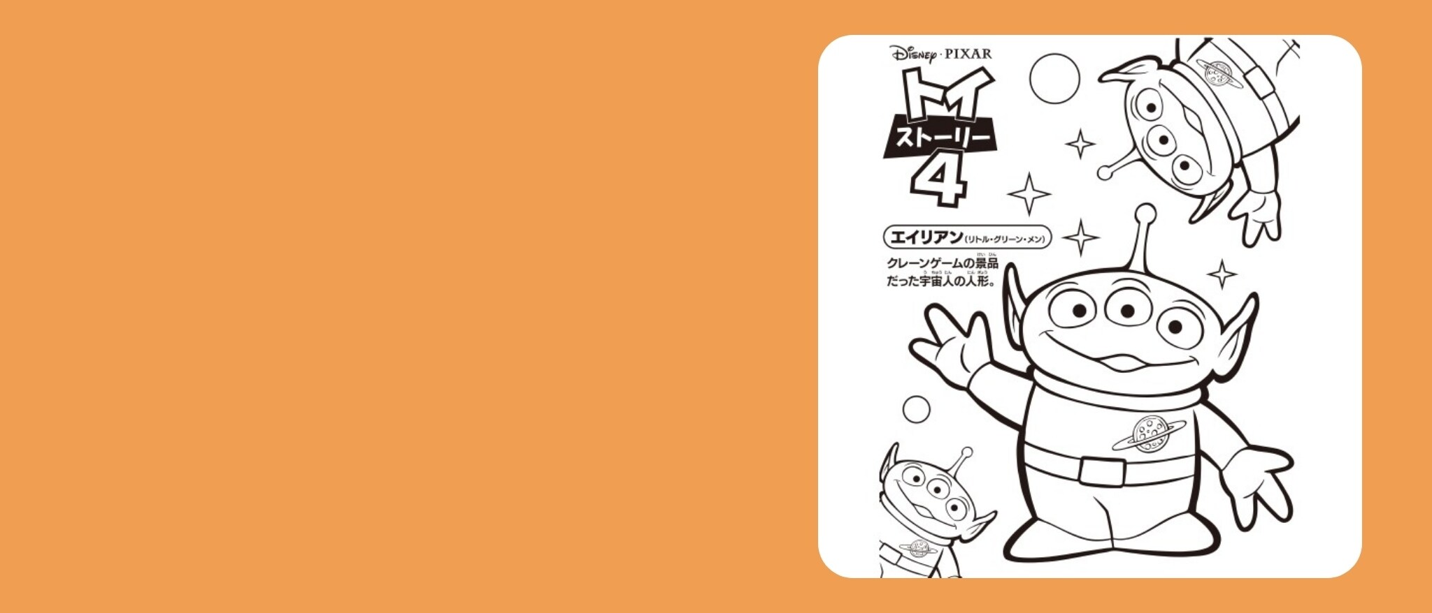 トイ・ストーリー4 エイリアンのぬりえダウンロードディズニーキッズ公式。