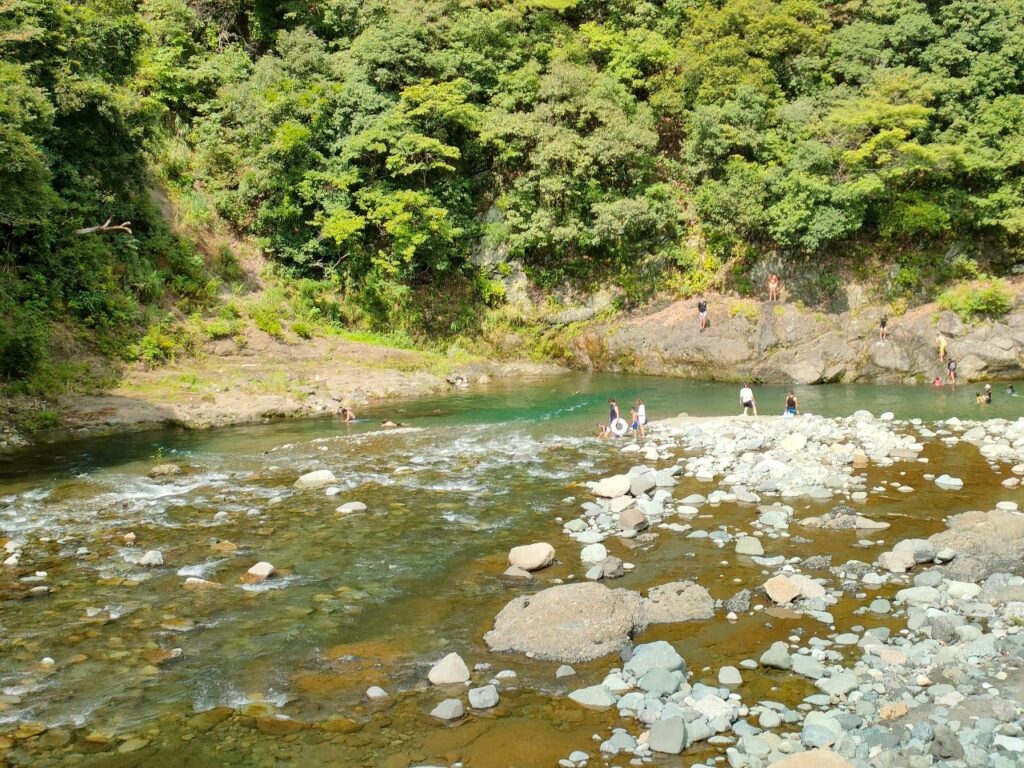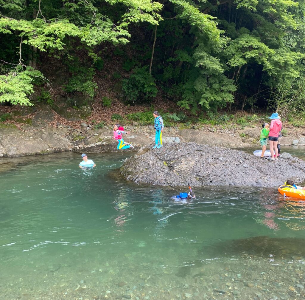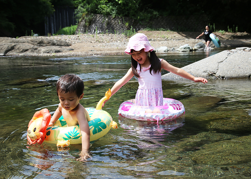 青野原オートキャンプ場はグループでの川遊びが楽しい。
