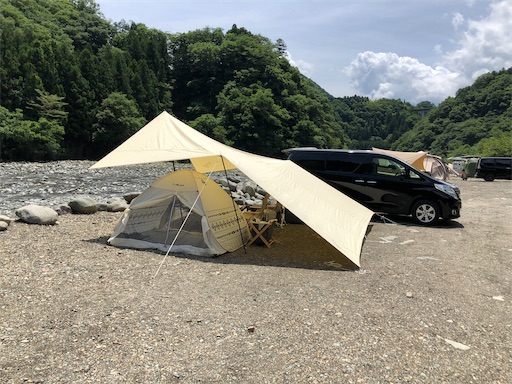 パパのお友達と 青野原オートキャンプ場へ 暑いから カーサイドタープ、車中泊で 設営撤収時間は少しでも短く❕campoutdoors캠핑캠프露營露营キャンプ campgearキャンプギア車中泊車中泊キャンプハイエース車中泊ハイエースワイドバンライフ。